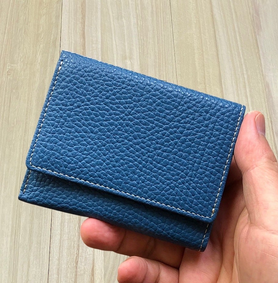 1枚ずつ収納できるカードポケット、紙幣の角が折れないゆったりとした札入れ、出し入れしやすい大きいボックス型小銭入れなど研究し設計されてた、Made in 清澄白河(国産)の小さい財布です。