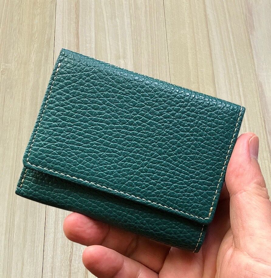 1枚ずつ収納できるカードポケット、紙幣の角が折れないゆったりとした札入れ、出し入れしやすい大きいボックス型小銭入れなど研究し設計されてた、Made in 清澄白河(国産)の小さい財布です。