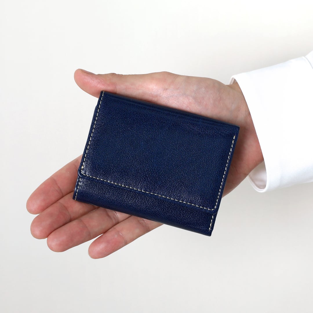 小さい財布の縫製こそ高い技術であるとともに、小さい財布の設計も職人の技術です。財布全体と各パーツごとに革の厚みをとことん研究、手のひらサイズの財布に仕上げました。
