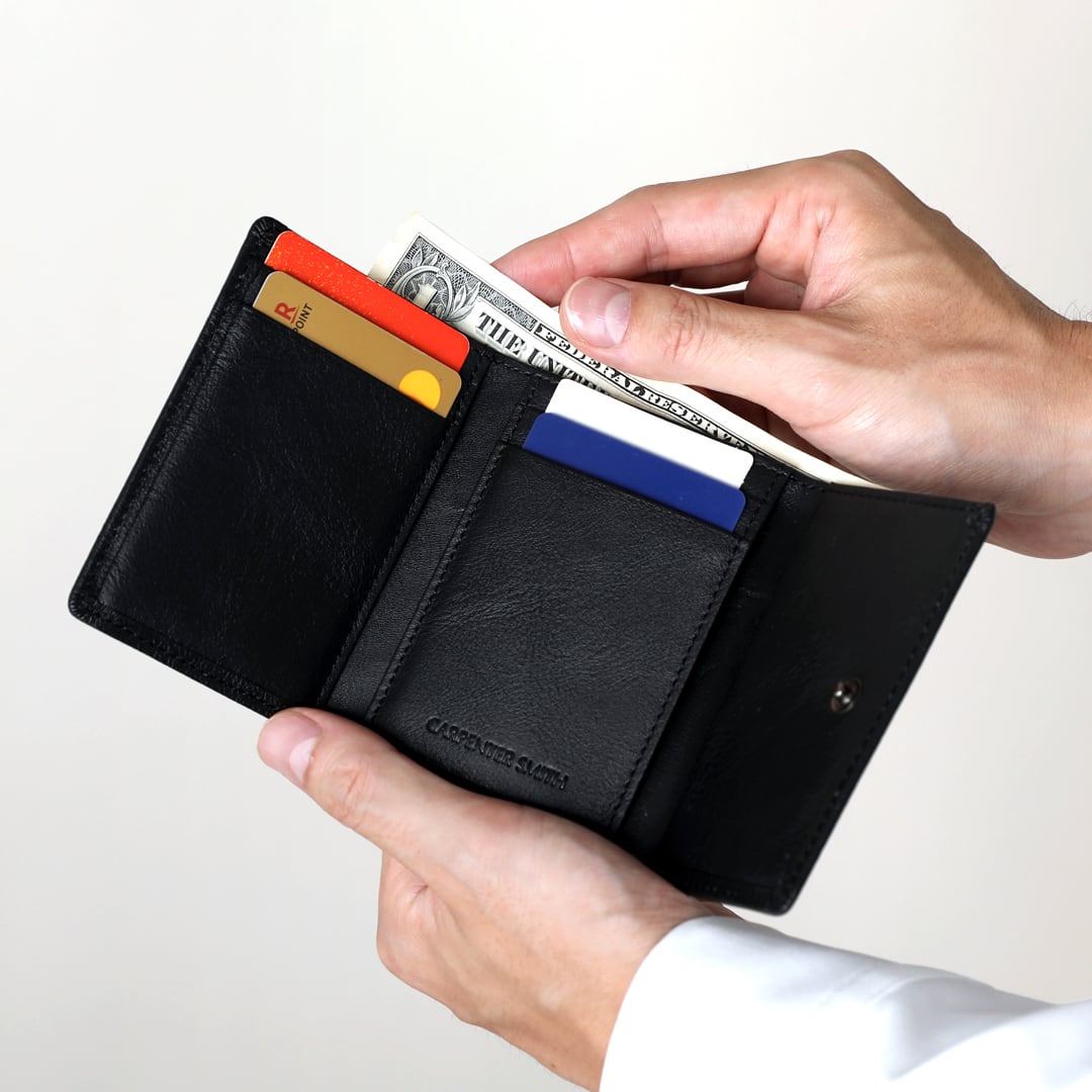 革工房『カーペンタースミス』さんが「小さくても普通に使いやすく」をコンセプトに、サイズやデザインを優先するあまりに仕様に制約が生じる一般的な小さい財布とは一線を画し、ユーザー目線で研究・設計した、Made in 清澄白河(国産)の小さい財布です