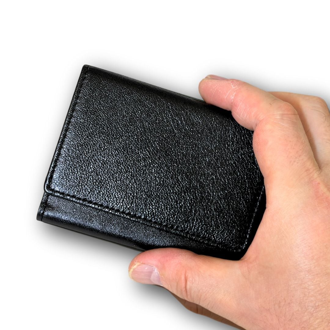 小さい財布の縫製こそ高い技術であるとともに、小さい財布の設計も職人の技術です。財布全体と各パーツごとに革の厚みをとことん研究、手のひらサイズの財布に仕上げました。